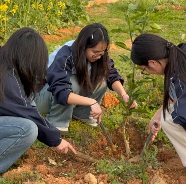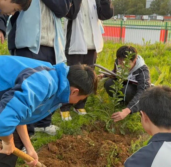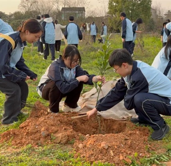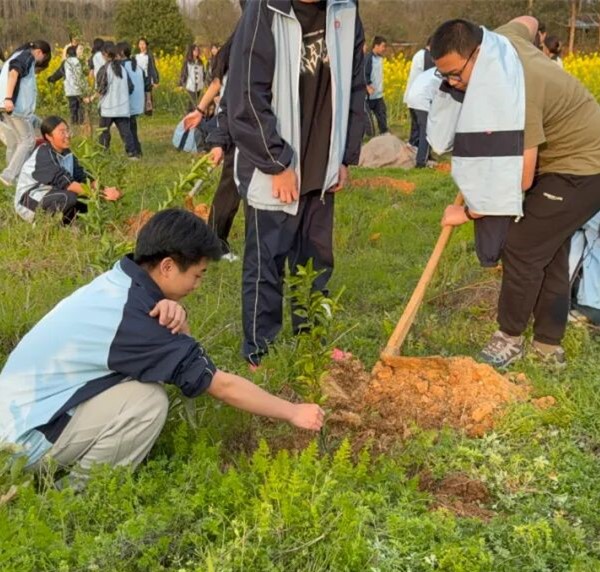 春回大地,万物竞发。3月12日,正值第48个植树节,衡阳华岳高级中学组织学生走进劳动教育实践基地,开展“植树护绿正当时 青春筑梦向未来”主题实践活动。蓝天白云下,油菜花海旁,同学们以锹为笔、以土为卷,在春日的沃土里种下绿色希望,用劳动书写青春担当。 “扶直树苗、填实泥土、提水浇灌……”同学们分工协作,动作娴熟又不失细致。有的同学紧握铁锹,弯腰用力将泥土填入树坑,额角的汗珠在阳光下熠熠生辉,眼神里满是专注;有的同学小心翼翼地扶正树苗,指尖轻触枝干,确保树苗竖直稳扎,身旁的伙伴则轻轻抚平坑边土壤,生怕惊扰了这株新生的绿意;还有的同学提着红色水桶,缓步走向树苗,缓缓倾注清水,水流浸润着泥土,也浇灌着少年心中的希望。 春种一抹绿,秋成万里荫。愿华岳高级中学的学子们如亲手栽种的树苗般,扎根沃土、向阳生长,以青春之朝气担时代之责任,在逐梦路上步履不停,让绿色梦想与青春理想共赴远方! |