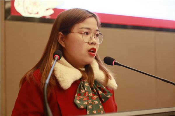 肖苏雨老师作为优秀“师傅”代表作典型发言,她回顾了“青蓝工程”活动开展过程,分享了她的经验和感受,提出为师者首先要注意角色定位,坚持互帮互学,做好指导,共同提高;其次要耐心细心,既要充分肯定徒弟的成绩,也要直言不讳地指出其缺点和不足,提出改进意见,以期取得最大成效。