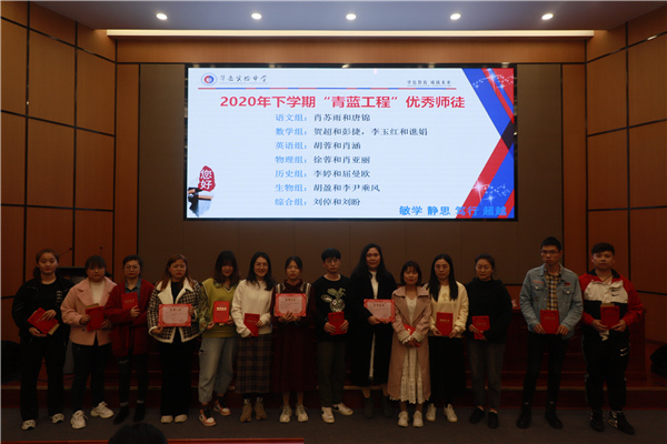 首先,谭直彬主任总结了“青蓝工程”师徒结对工作开展情况,他回顾了青年教师成长过程,分享了师徒“传帮带”的经验,最后宣布获得2020年下学期“优秀师徒”荣誉称号的名单。