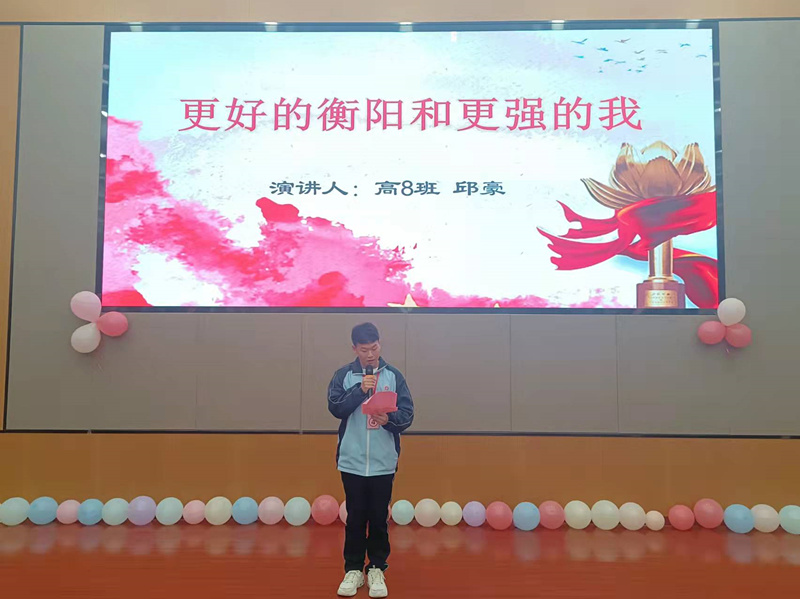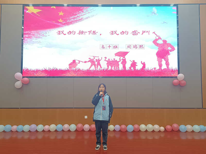 世界上最快乐的事,莫过于为理想而奋斗。 ——苏格拉底 12月15日,衡阳华岳高级中学“我的衡阳·我的奋斗”高一年级学生演讲比赛在多功能报告厅隆重举行,8名选手紧扣市第十二次党代会精神激情开讲。 同学们畅谈对青春奋斗、责任担当的感悟;抒发勇于追梦、勤于奋斗的热情。一段段慷慨激昂的演讲获得了现场观众的阵阵掌声。 衡阳保卫战,波澜壮阔。衡阳从站起来,富起来,到强起来,经历了翻天覆地的变化,家园从一穷二白到今日百业兴旺,繁荣富强。雁城的崛起,让世界震惊! △彭钰珍同学的精彩演讲获得了师生的一致好评 同学们以饱含深情的文字、激情昂扬的演讲,向家乡告白,为理想奋斗! 一等奖 彭钰珍 二等奖 罗紫旖 邱豪 三等奖 王欢 刘彦孜 宾捷 邱一航 周锦熙 |
