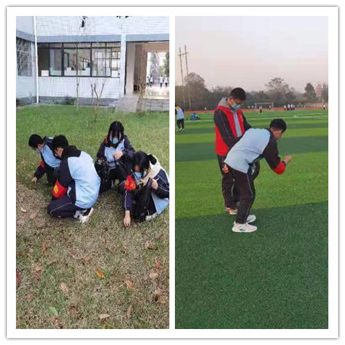 弯腰行动 捡起的不仅是垃圾 更是修养 为营造干净整洁、文明有序的校园环境,增强学生爱护校园环境的主人翁意识,12月17日,我校开展了“净化校园·美化心灵”弯腰活动。 学生会成员在老师的带领下来到教学楼旁的花园、田径运动场围墙等地方,用扫把、撮箕等工具捡拾垃圾,哪怕是藏在草丛里的一小片纸屑、一个小瓶盖都被一一清扫出来。 |