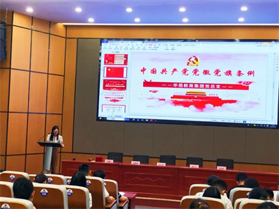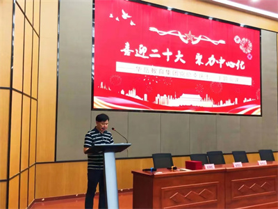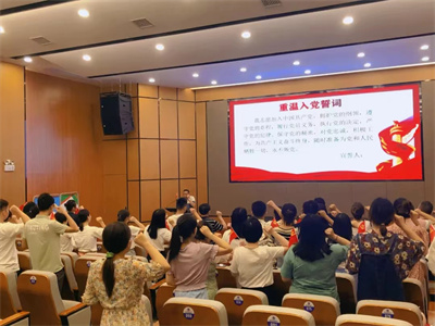 庆祝中国共产党成立101周年,进一步夯实基层党组织的凝聚力、战斗力,6月30日,华岳教育集团党总支开展了庆祝中国共产党成立101周年“喜迎二十大·聚力中心化”主题党日活动。会议由集团党总支书记崔艳丽同志主持,全体党员参加了会议。 大会在庄严的国歌声中拉开帷幕。 党建指导员朱伟成书记主讲《喜迎二十大·聚力中心化》主题党课,并带领全体党员全面学习了《中共中央关于党的百年重大成就和历史经验的决议》,重温党百年奋斗的重大成就,激励广大党员以史为鉴、开创未来,不忘立德树人的初心,牢记为党育人、为国育才的使命。 会上,集团党总支书记崔艳丽同志就《中国共产党党徽党旗条例》中党徽党旗生产制作、使用管理、监督问责等5个方面共24条内容进行了详细学习。要求全体党员自觉规范使用党徽、党旗及图案,维护党徽党旗的尊严,各支部要把党徽、党旗知识学习作为党史学习教育、党员教育培训、入党积极分子培训的重要内容。要求党员认真贯彻执行条例中的各项规定,牢记党员身份,自觉做党徽、党旗的守护者。 崔艳丽同志公布2021年度优秀共产党员名单,授予曹秋生、吴天骏等16名同志“优秀共产党员”称号。 优秀共产党员接受表彰 表彰仪式后,机关党支部书记曹秋生同志带领全体党员重温了入党誓词:“我志愿加入中国共产党,拥护党的纲领,遵守党的章程... ...为共产主义奋斗终生,随时准备为党和人民牺牲一切,永不叛党。”铿锵有力的宣誓声响彻大厅,久久回荡。 会议强调,今年是党的二十大召开之年,是党和国家进入全面建设现代化国家新征程的重要一年,全体党员要在习近平新时代中国特色社会主义思想指引下,在市委、市政府和市教育局的正确领导下,不忘立德树人初心,牢记为党育人、为国育才使命,推动学校高质量发展,以优异的成绩迎接党的二十大胜利召开! |