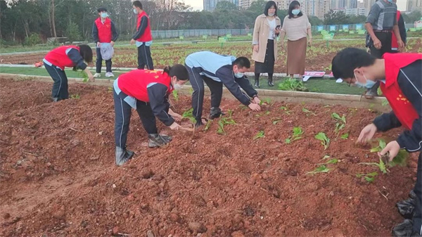 以劳育德 以劳增智 以劳培美 我校贯彻落实《中共中央国务院关于全面加强新时代大中小学劳动教育的意见》,扎实推进“五育并举”,挖掘劳动树德、增智、强体、育美的综合育人价值,利用学校的“学生劳动教育实践基地”,开展内容丰富、形式多样的劳动教育实践。11月28日下午,我校开展了“寻躬耕之趣·享劳动之乐”为主题的高一年级学生劳动教育实践活动。 在劳动教育实践基地,学校领导与师生一起开展蔬菜种植实践活动,大家挖土坑、埋菜根,小心翼翼将菜苗埋下,为其浇水,为土壤保湿,让植物更好地生长。劳动场面甚是热闹,校园内回荡着欢声笑语。 今后,我校坚持把劳动教育融入学生学习生活中,努力为学生终身发展打好人生底色,让学生从中体验到劳动的意义和乐趣,让劳动教育、劳动实践成为学生的“必修课”。 片片新绿破土而出 蓓蕾绽放华岳校园 |