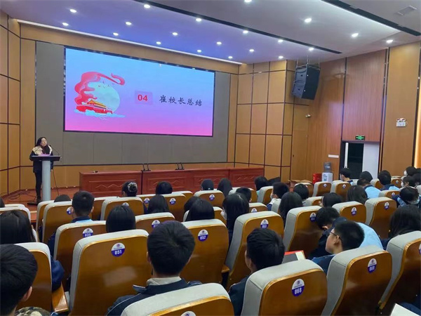 1月5日晚,我校在多功能报告厅举行了以“行远自迩·笃行不怠”为主题的期末德育工作表彰大会。 会议在庄严的国歌声中拉开帷幕。德育处廖丽萍主任对学生会、广播站、团支部的学期工作进行总结,激励同学们继续努力,再获佳绩。之后,优秀学生代表上台发言,表达迈进新时代,奋进新征程的坚定信心。德育处副主任唐弦宣读了优秀学生会干部、优秀团员及优秀广播员名单,并为获奖的同学颁奖。 最后,德育副校长崔艳丽在讲话中指出,希望受表彰的同学再接再厉,更好地发挥榜样和表率作用,并强调德育处要谋划好新学期的德育工作,把各项德育工作落到实处。班主任要落实立德树人根本任务,培养德智体美劳全面发展的社会主义建设者和接班人。 |