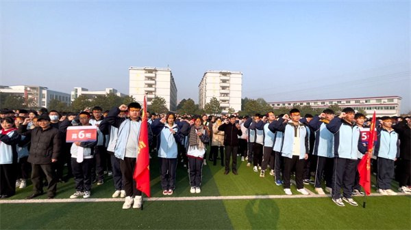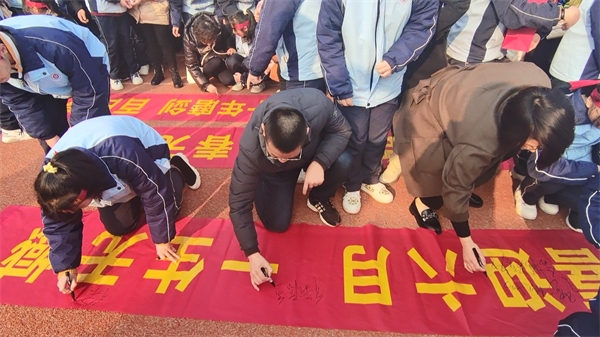 众志成城 誓创辉煌 2月27日上午,衡阳华岳高级中学高三年级师生齐聚田径运动场,举行“众志成城·誓创辉煌”冲刺高考百日誓师大会。大会由行政处詹华主任和德育处唐弦副主任主持。 伴随着激昂的乐曲声,高三学子迈着坚定的步伐走过“金榜题名”“状元门”。 雄壮的国歌声响起,全体师生向国旗行注目礼。 熊晓民校长作励志讲话。熊校长向家长朋友的到来表示热烈的欢迎,对高三全体教师表示诚挚的敬意,对全体同学表示真诚的祝愿。希望高三全体教师精诚团结,抓实教学工作,关注关心每一个学生,科学、高效地为学生保驾护航。希望高三学子善于总结,勤于反思,踔厉奋发,笃行不怠! 之后,教师代表贺超老师讲话,勉励同学们全力以赴冲刺高考,谱写绚丽篇章。学生代表费楚舒、何雨杰同学发言。家长代表高1班肖振东同学的父亲发言,呼吁同学们摒弃所有杂念,潜心学习,奋力拼搏。 李杰云校长带领全体高三学子在国旗下庄严宣誓。一句句铿锵有力、慷慨激昂、振奋人心的誓言在校园回荡,展示了学子们高考必胜的信心和决心。 高三师生及家长在横幅上签名。 誓师大会会场热烈,师生豪情满怀,掌声、欢呼声此起彼伏。 此次冲刺高考百日誓师大会的举行,吹响了高考冲锋的集结号。华岳高级中学全体高三师生将奋战一百天,拼搏一百天,誓创2023年高考辉煌! |