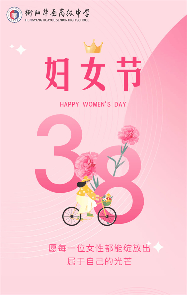 优雅如你 美好如初 在“三八”国际妇女节到来之际,衡阳华岳高级中学向全体女教职员工致以节日的问候和最美好的祝愿!向长期以来一直在平凡岗位上默默坚守、为学校发展付出辛勤汗水、做出积极贡献的女教职员工表示衷心的感谢和崇高的敬意! 你 牢记教育初心 坚持立德树人 孝顺老人 和睦家人 建设幸福之家 心中有梦 眼中有光 做一个幸福的人 …… 祝所有女性朋友节日快乐! |