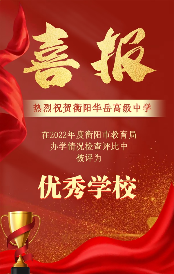 喜报——衡阳华岳高级中学被评为"优秀学校"