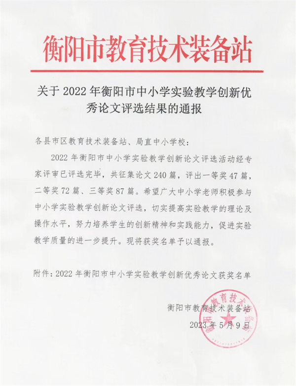 教师获奖 热烈祝贺衡阳华岳高级中学何伟老师论文《基于新课改视域的高中物理教学探究——以〈重力势能〉为例》在2022年衡阳市中小学实验教学创新优秀论文评选中荣获一等奖! 学生获奖 2022~2023学年度湖南省普通高中省级三好学生名单 肖振东 费楚舒 2022~2023学年度湖南省普通高中省级优秀学生干部名单 刘粤婧 熊培煦 |