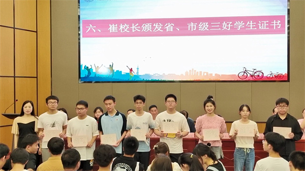 6月10日,我校于多功能报告厅举行了2023届高中毕业典礼暨成人礼仪式。学校领导、高三全体师生及部分家长代表参加了典礼,德育处王慧老师担任主持。 10时28分,会场内,全体肃立,奏唱国歌,2023届高中毕业典礼就此拉开序幕。 校长致辞 熊晓民校长寄语同学们对他人多一份理解与关爱,对社会多一份感恩与责任,对规则多一份敬畏与遵守。遇事情冷静思考,做工作笃行不怠,学做人有作为敢担当。祝同学们毕业愉快、前程似锦! 学生代表发言 刘粤婧同学作为高三学生代表发言,表达了对学校、老师、同学、家长的感激。 家长发言 夏之菡同学的家长在发言中对老师和学校致以衷心的感谢,并鼓励孩子们在今后的道路上勇往直前。 教师代表讲话 肖裕名老师在讲话中表达了对高三学子的浓浓期许和由衷鼓励。 △崔艳丽副校长颁发省市级“三好学生”“优秀学生干部”证书。 △李杰云副校长宣读十八岁学生名单。 △宋仕利副校长颁发《成人证》《中华人民共和国宪法》。 最后 全体师生齐唱校歌《华岳之星》 在歌声中作别三年高中生涯 期待未来的美好 保持热爱 奔赴山海 |