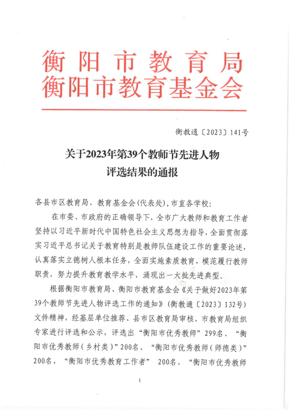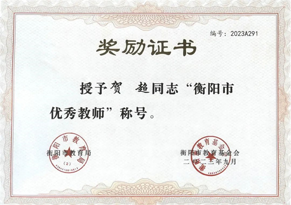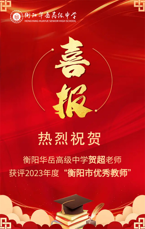 热烈祝贺衡阳华岳高级中学贺超老师获评2023年度“衡阳市优秀教师”!