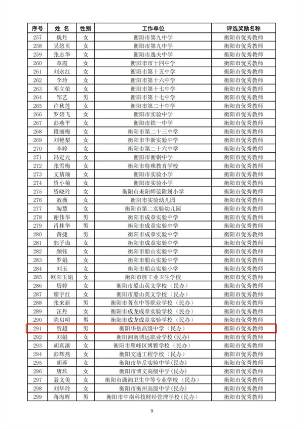 【喜报】热烈祝贺衡阳华岳高级中学贺超老师获评2023年度“衡阳市优秀教师”!