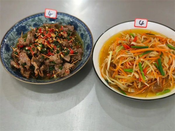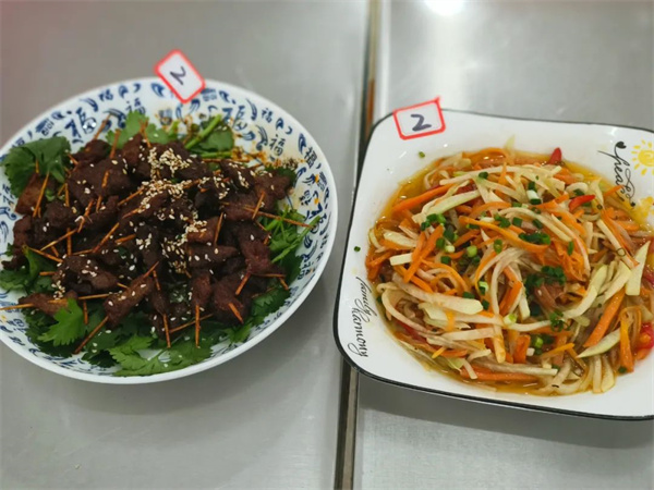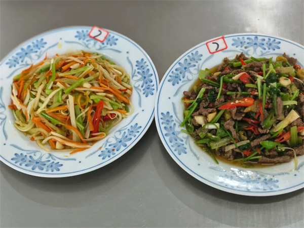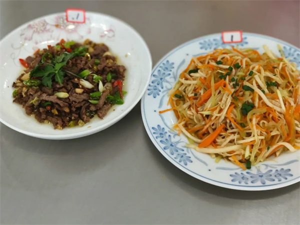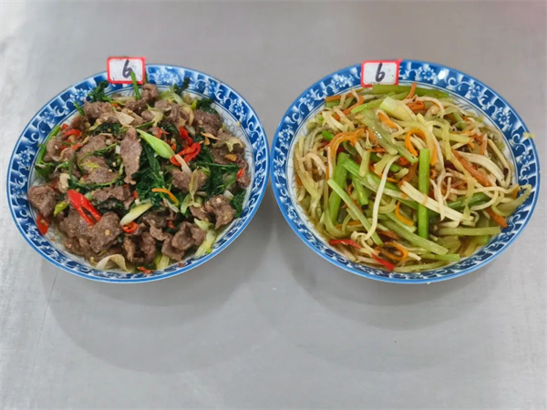 为了提升学校餐饮服务质量,给食堂员工提供相互学习、展示技能的舞台,11月15日下午我校举行了食堂员工技能比赛。此次比赛分两个项目:洗切员刀工展示和厨师烹饪比拼。 洗切员刀工展示 俗话说“厨以切为先”,只有把菜切好了,才有可能做出有营养的美味佳肴,菜的粗细、厚薄也会直接影响到食物的口感和品相。此次刀工展示要求在规定的时间内将事先准备好的莴笋切片,红萝卜切丝。 “预备,开始........”一声令下,只见选手们动作飞快,技术娴熟,手起刀落间,一片片薄如蝉翼的莴笋片和一根根细如发丝的红萝卜丝落在了案板上。由学校领导、师生代表组成的评委团对参赛“作品”逐一进行评分。 厨师烹饪比拼 一颗慧心调美味,两只巧手做佳肴。厨师们左手拿锅,右手拿勺,尽情挥洒,搅动锅中乾坤,油盐酱醋,煎炒烹炸,各显神通。看,一道道色彩鲜艳的美食已上桌。评委们细细品尝,分别从菜品的色泽外观、口感味道、特色创意及健康营养方面进行综合评分。 # 菜品展示 # 此次比赛充分展示了食堂员工的技能水平,营造了幸福、和谐的工作氛围。今后,全体食堂员工将继续加强基本功训练,提升烹饪技能,为师生提供更健康、更美味的营养膳食。 获奖情况 洗切组 一等奖:谢丽琼 龙庆英 二等奖:唐英佳 胡小兰 三等奖:罗冬秀 尹衡香 彭翠英 烹饪组 一等奖:廖金娥 二等奖:费兰萍 |