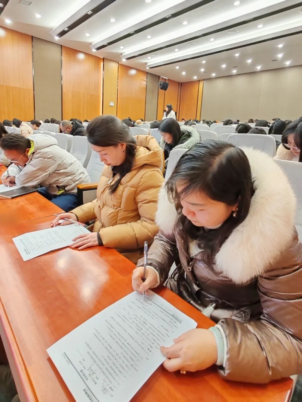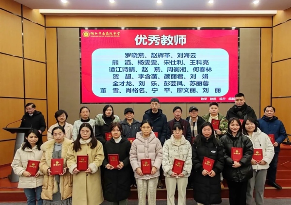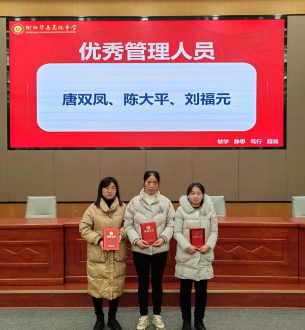 匠心耕耘 再续华章——衡阳华岳高级中学2023年下学期期末工作总结暨表彰大会 访问人数:865 新闻作者: 新闻来源: 发布时间:2024-2-3 6:25:52 2月2日下午,我校全体教职员工齐聚三楼报告厅,召开2023年下学期期末工作总结暨表彰大会。 熊晓民校长对全体教职员工的辛勤工作表示衷心感谢,同时对学期工作做了全面回顾,肯定了成绩和亮点,也指出了工作中的不足。希望全体教职员工秉承教育初心,在新的一年,坚持以德立学,以德施教,潜心工作, 为华岳高中的发展贡献力量。 校领导宣读优秀班主任、优秀教师、优秀年级组、优秀备课组、“青蓝工程”优秀指导教师及优秀生活组等奖项并颁奖。 崔艳丽副校长对《员工守则》《衡阳华岳高级中学制度汇编》进行培训。培训内容包括请、休假,同事关系,教育教学等管理制度。培训结束之后,组织了制度测试。 此次大会既是工作反思和总结,也是对新学期的期待和展望。我校全体教职员工将踔厉奋发、笃行不怠、匠心耕耘、再续华章!