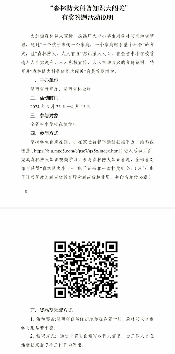 “森林防火科普知识大闯关”有奖答题活动说明