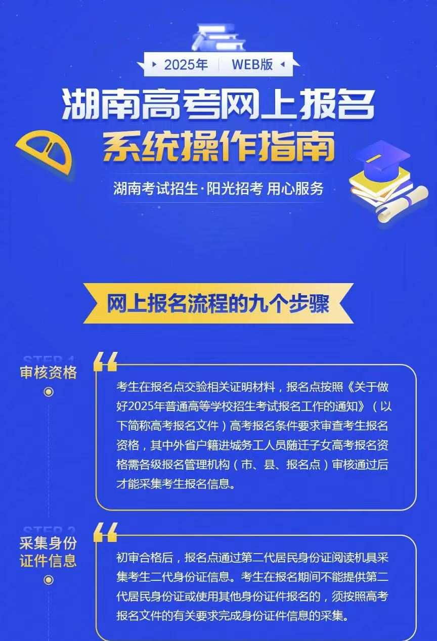 2025年湖南省高考网上报名系统操作指南 访问人数:849 新闻作者: 新闻来源: 发布时间:2024-10-18 16:50:37 2025年湖南省高考网上报名系统操作指南(WEB版)