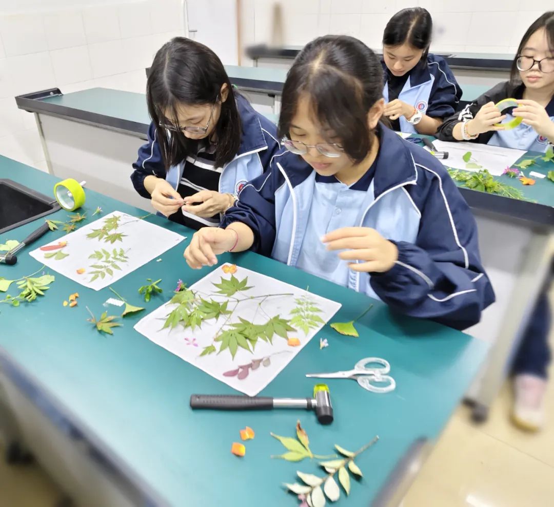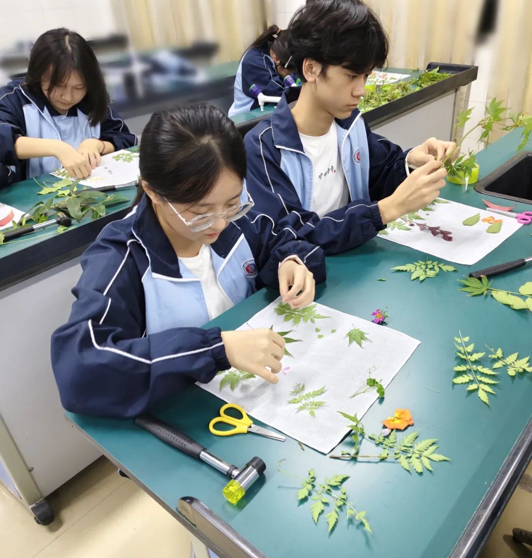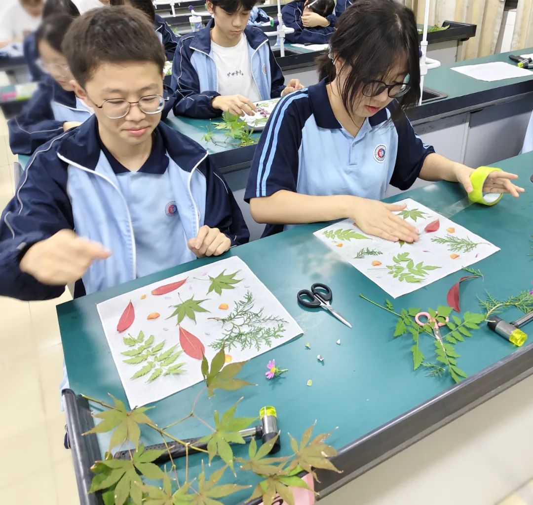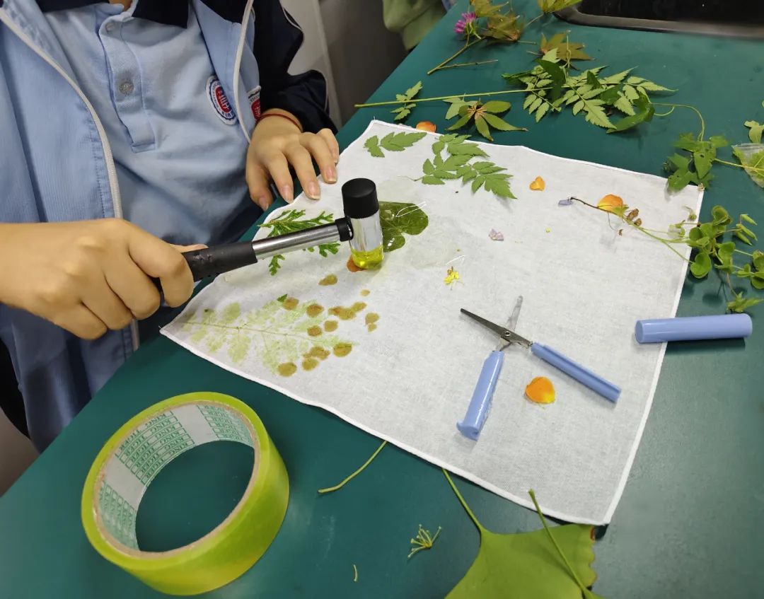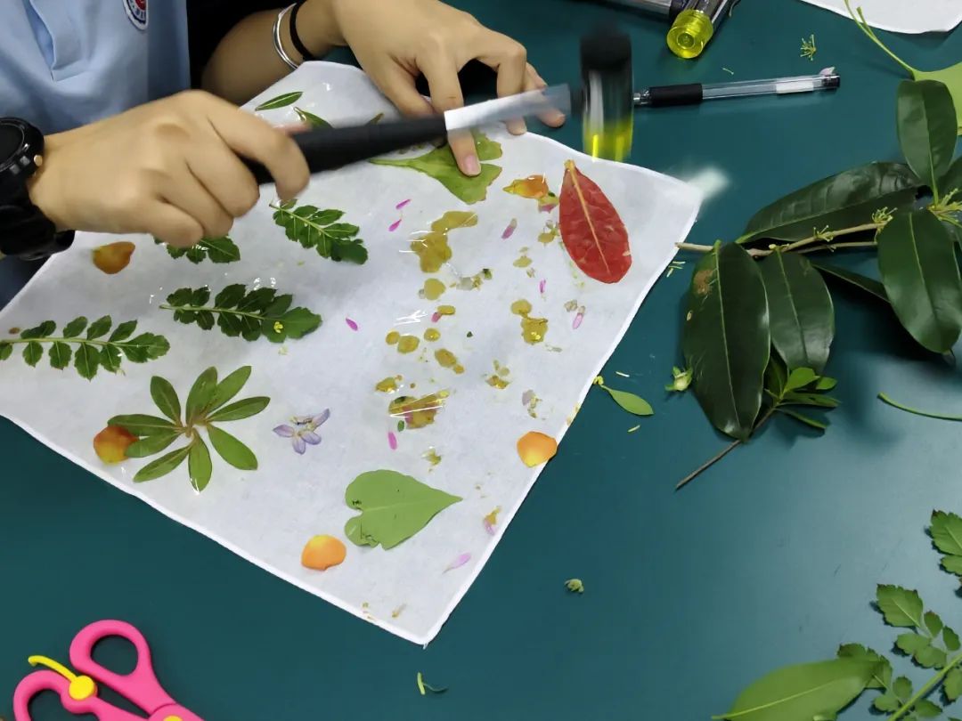 为了让学生更加亲近自然,感受植物拓染的独特魅力,我校于近期开展了高二年级植物拓染活动。